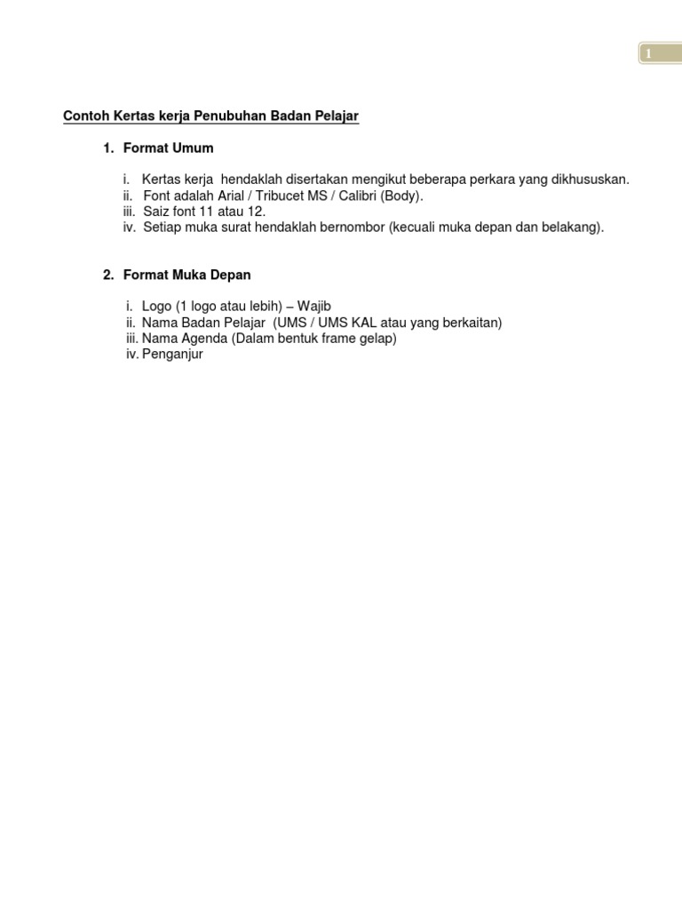 Garis Panduan Contoh Kertas Kerja Penubuhan Persatuan Pdf